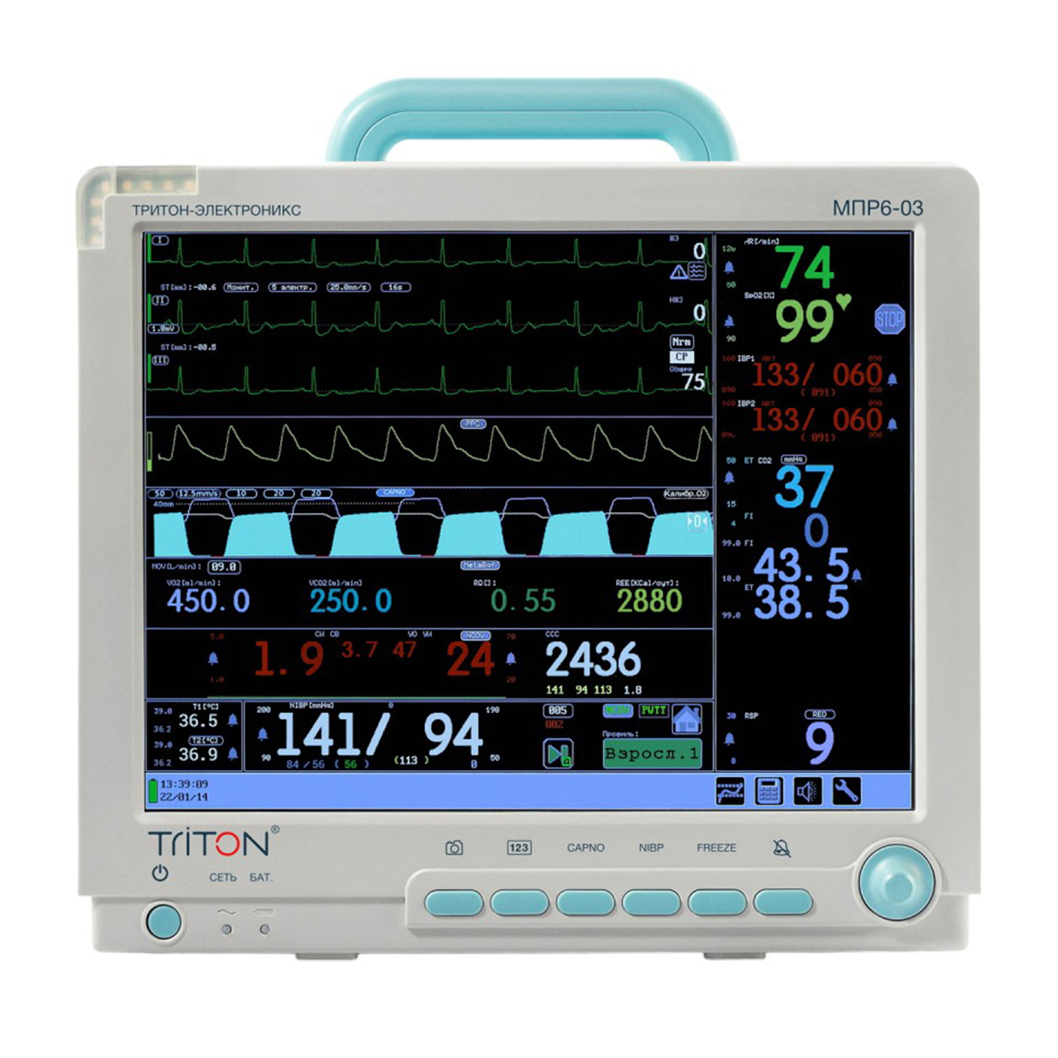 нет | EtCO2, FiCO2, ЧД Капнограмма |