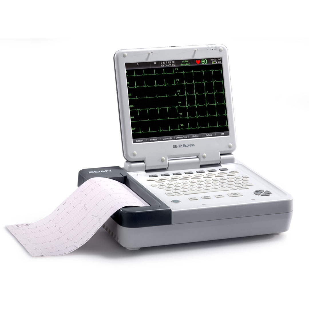 SE-12 Express представляет собой современное 12-канальное стационарное устройство, с помощью которого пользователь может с легкостью осуществлять регистрацию по 12 отведениям. Данная модель имеет другой вариант модификации SE-12 (данный кардиограф применяется для снятия стандартного ЭКГ в состоянии покоя). Модель SE-12 Express может быть использована для диагностики состояния сердечно-сосудистой системы при нагрузке. Предполагает возможность использования сканера штрих-кодов для упрощения ввода данных пациентов.