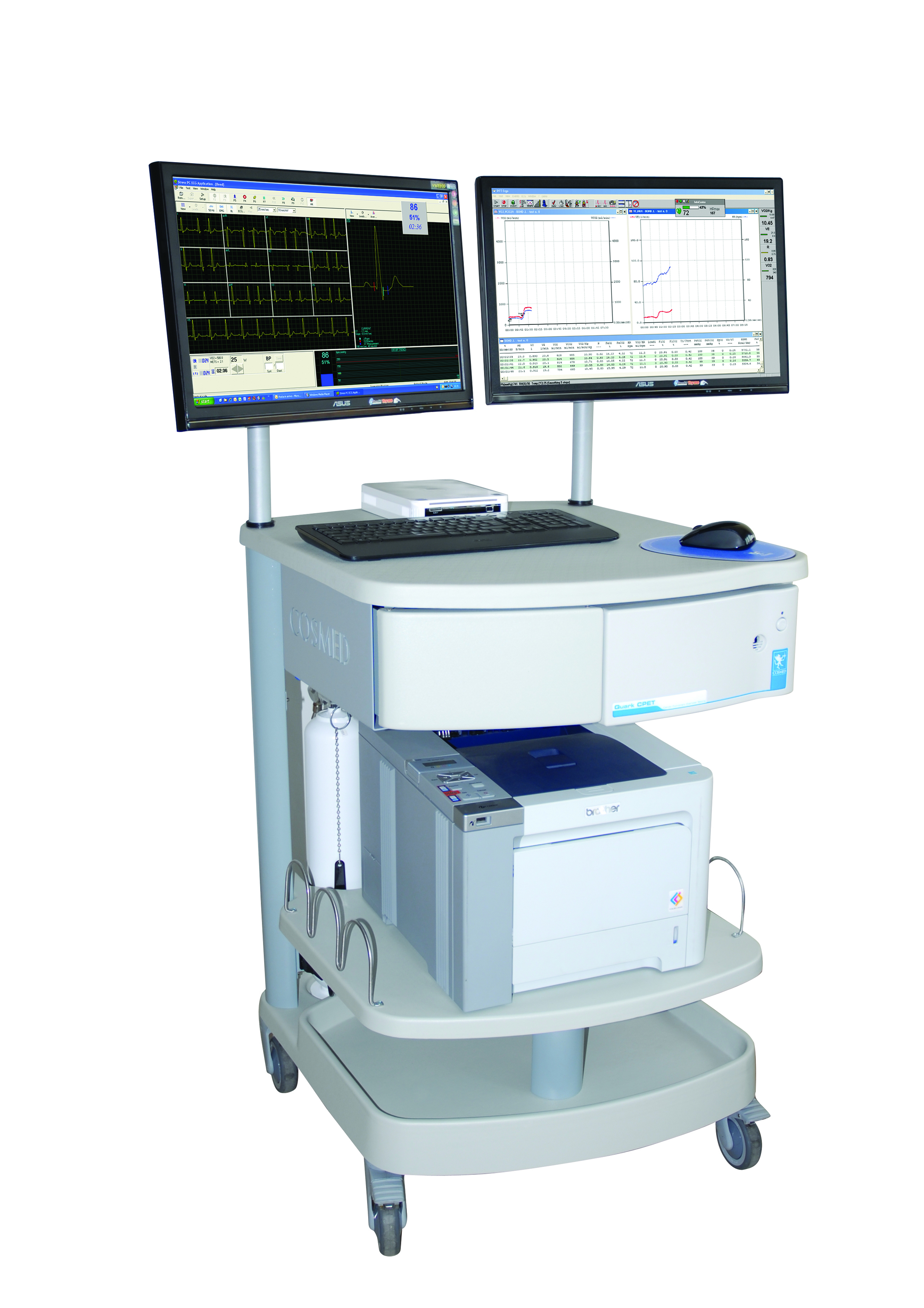 Спироэргометрическая системаСистема диагностическая для оценки функционального состояния в покое и при дозированной физической нагрузке Quark, исполнение Quark CPET, с принадлежностями, предназначена для измерения легочного газообмена во время нагрузочного тестирования.