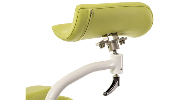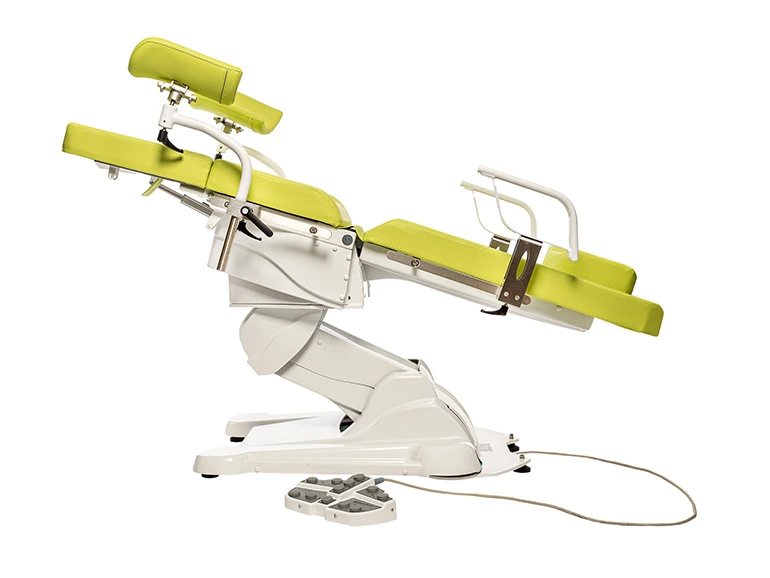 - Управление с помощью беспроводной педали с функцией памяти — врач может самостоятельно внести ту конфигурацию, которую хочет запомнить, и использовать единственное нажатие кнопки для перевода кресла в это положение. Запоминается до трех позиций, кнопки выделены в центральной части педальной панели. Четвертая кнопка выводит кресло в позицию «покой»;