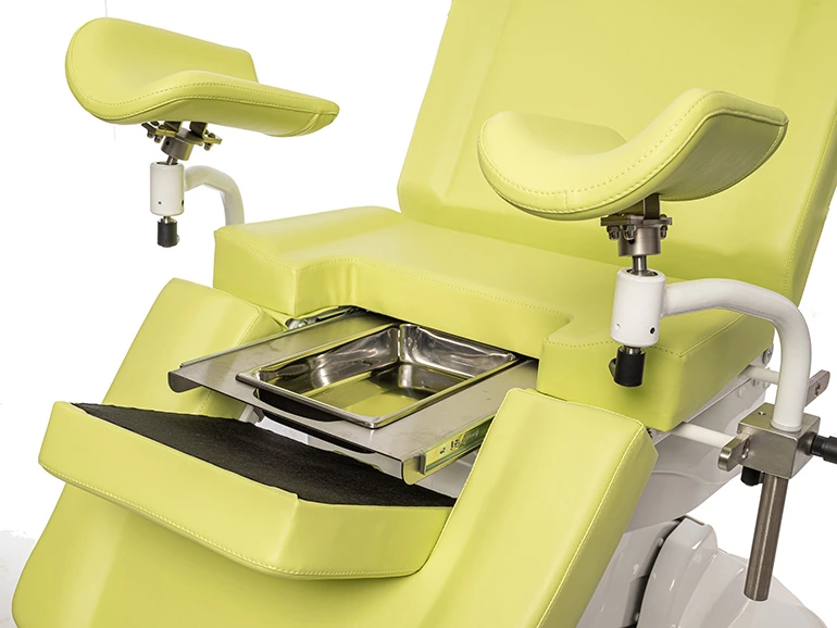 Сиденье кресла оборудовано выдвижным поддоном из нержавеющей стали для сбора жидкости