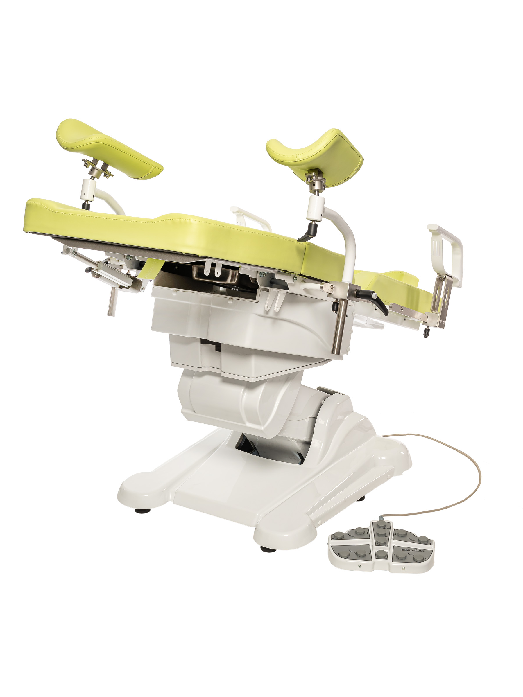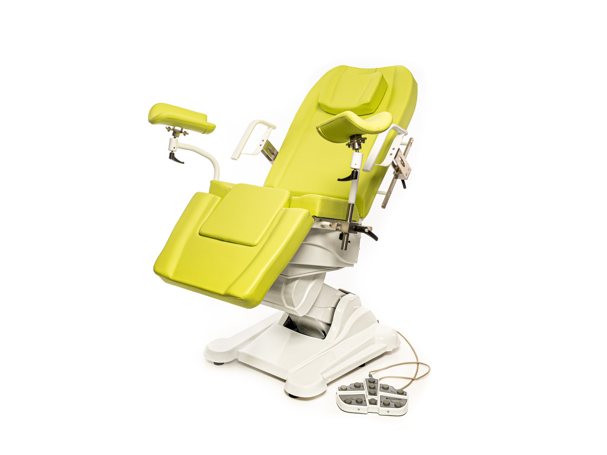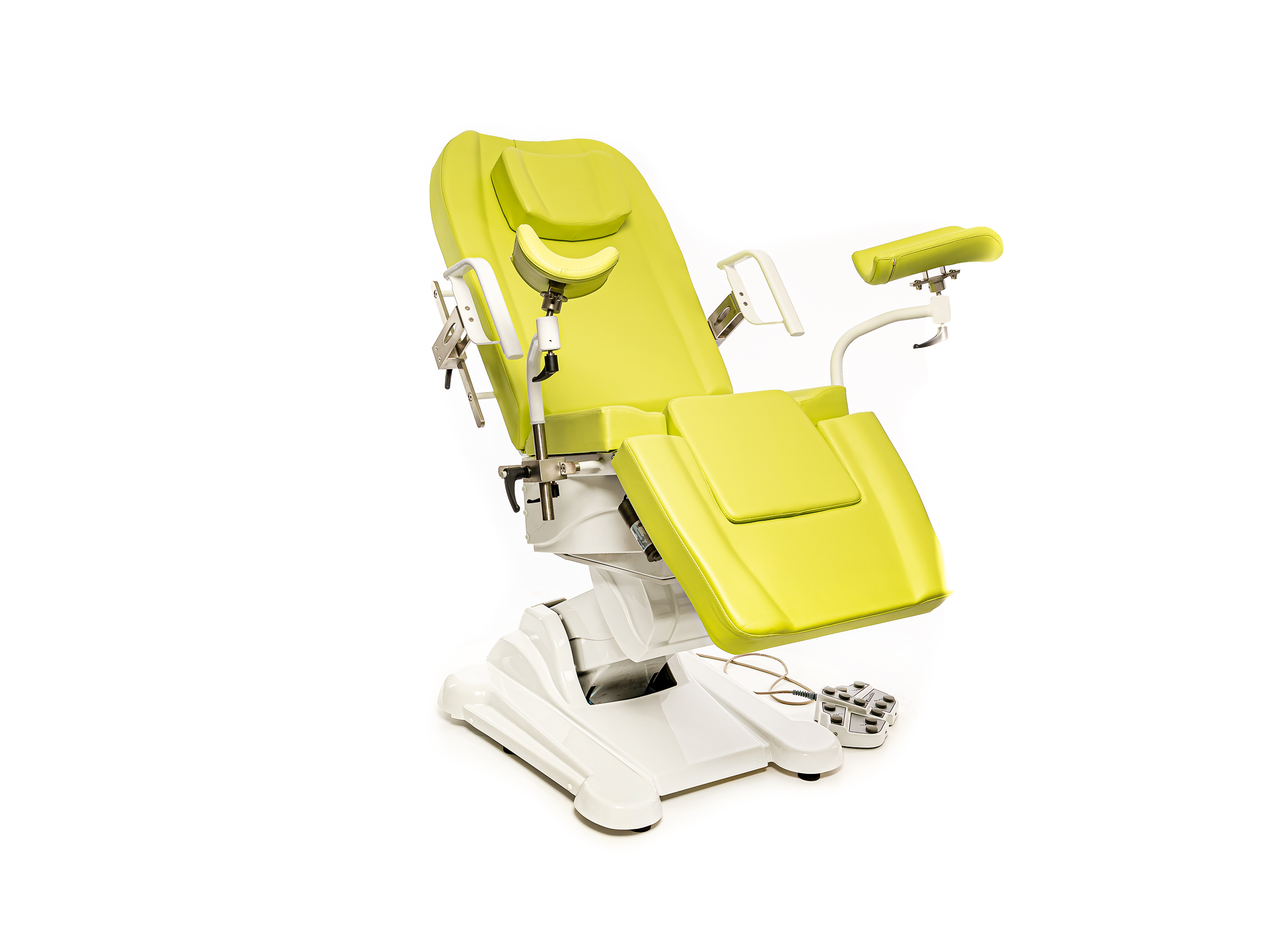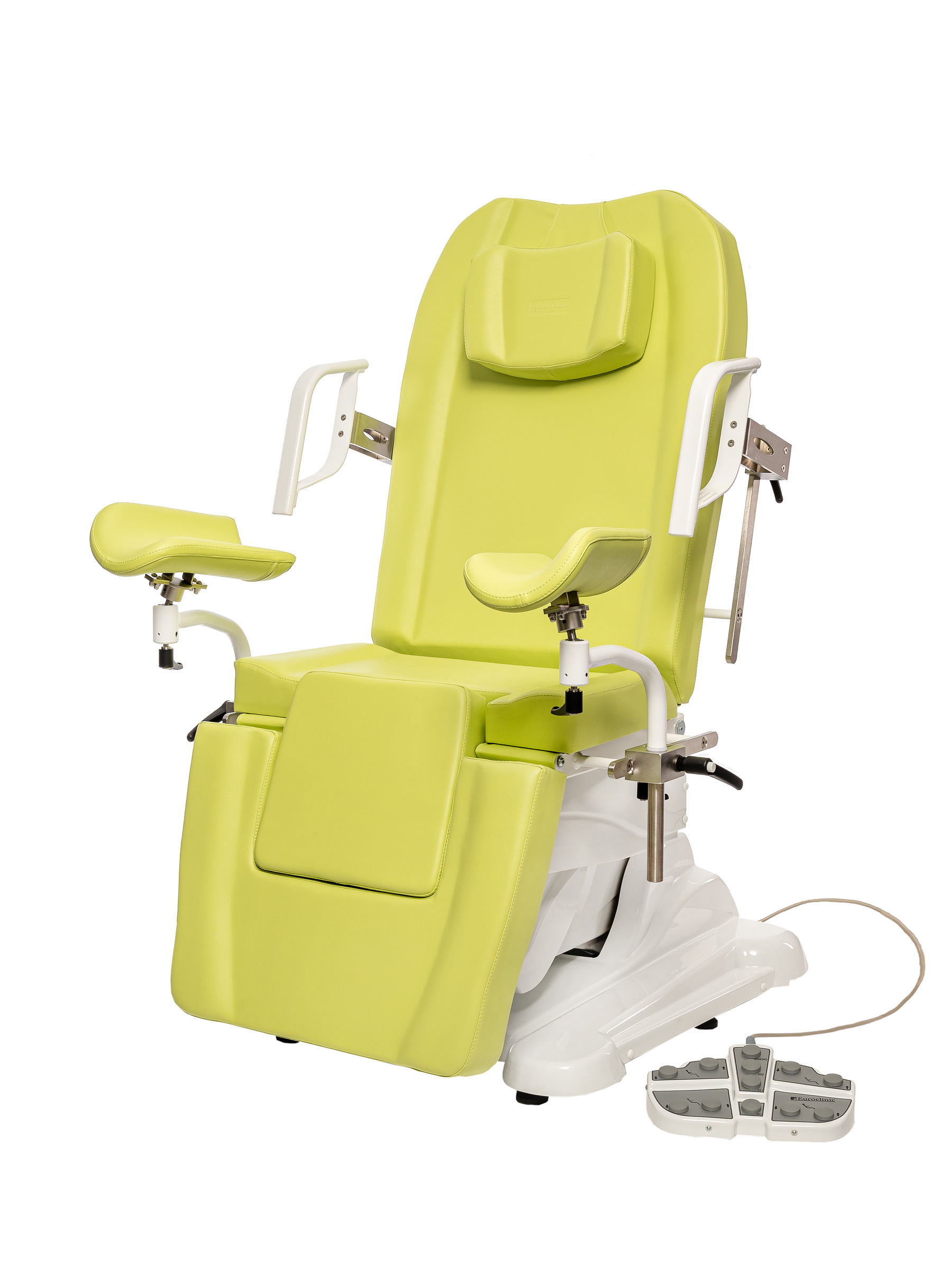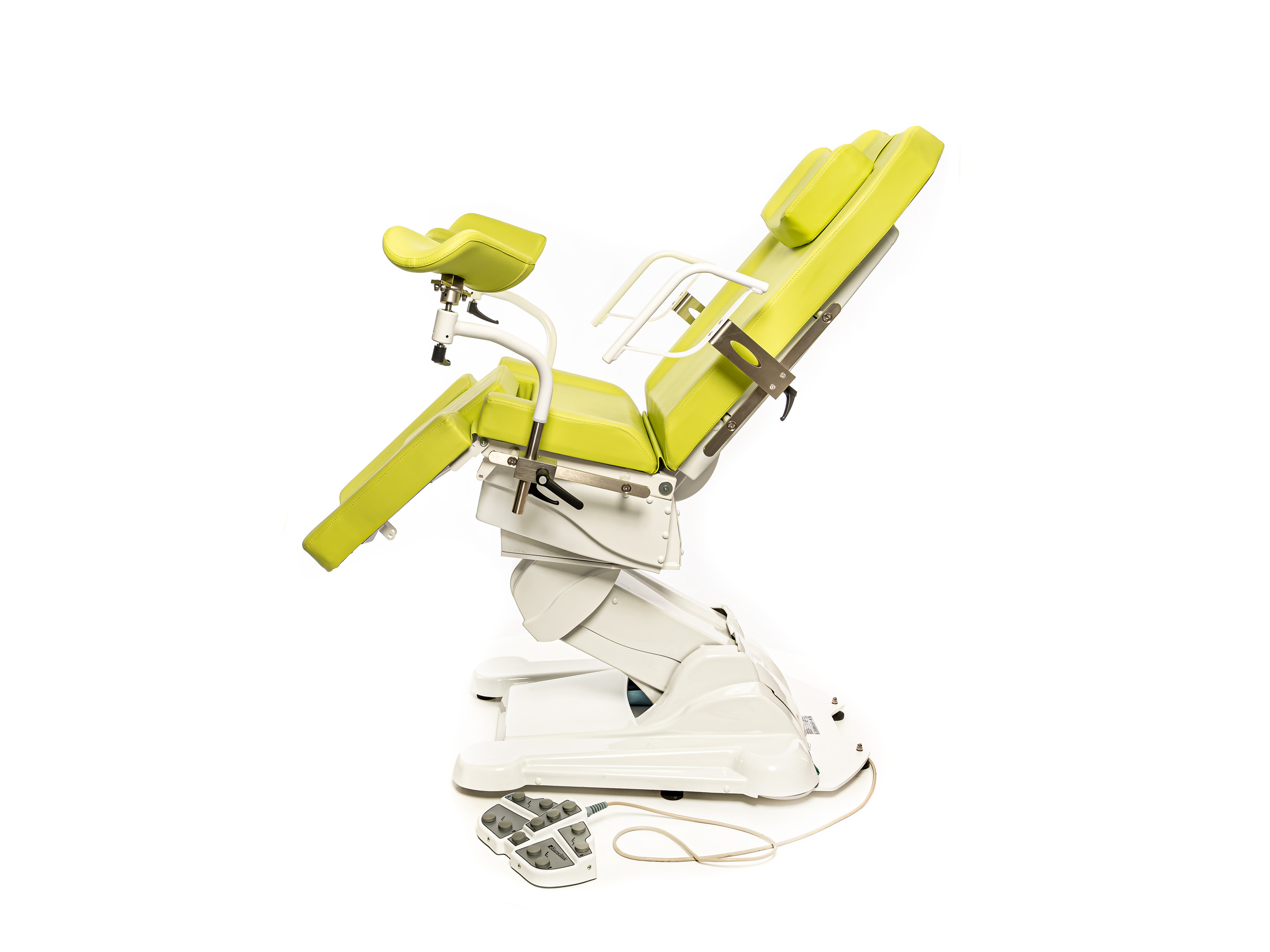 Пара съемных металлических подлокотников гарантирует безопасную фиксацию пациента;