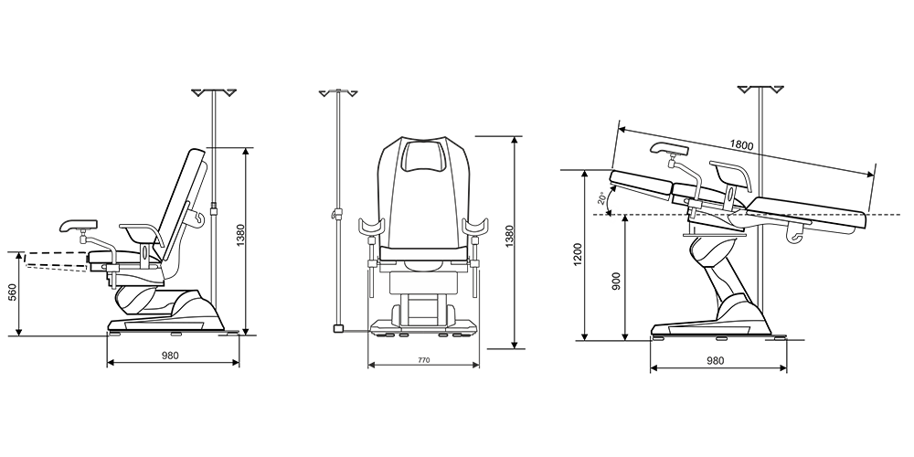 Фиксатор для капельницы в основании кресла с поворотом на 90°. (опция).Габариты