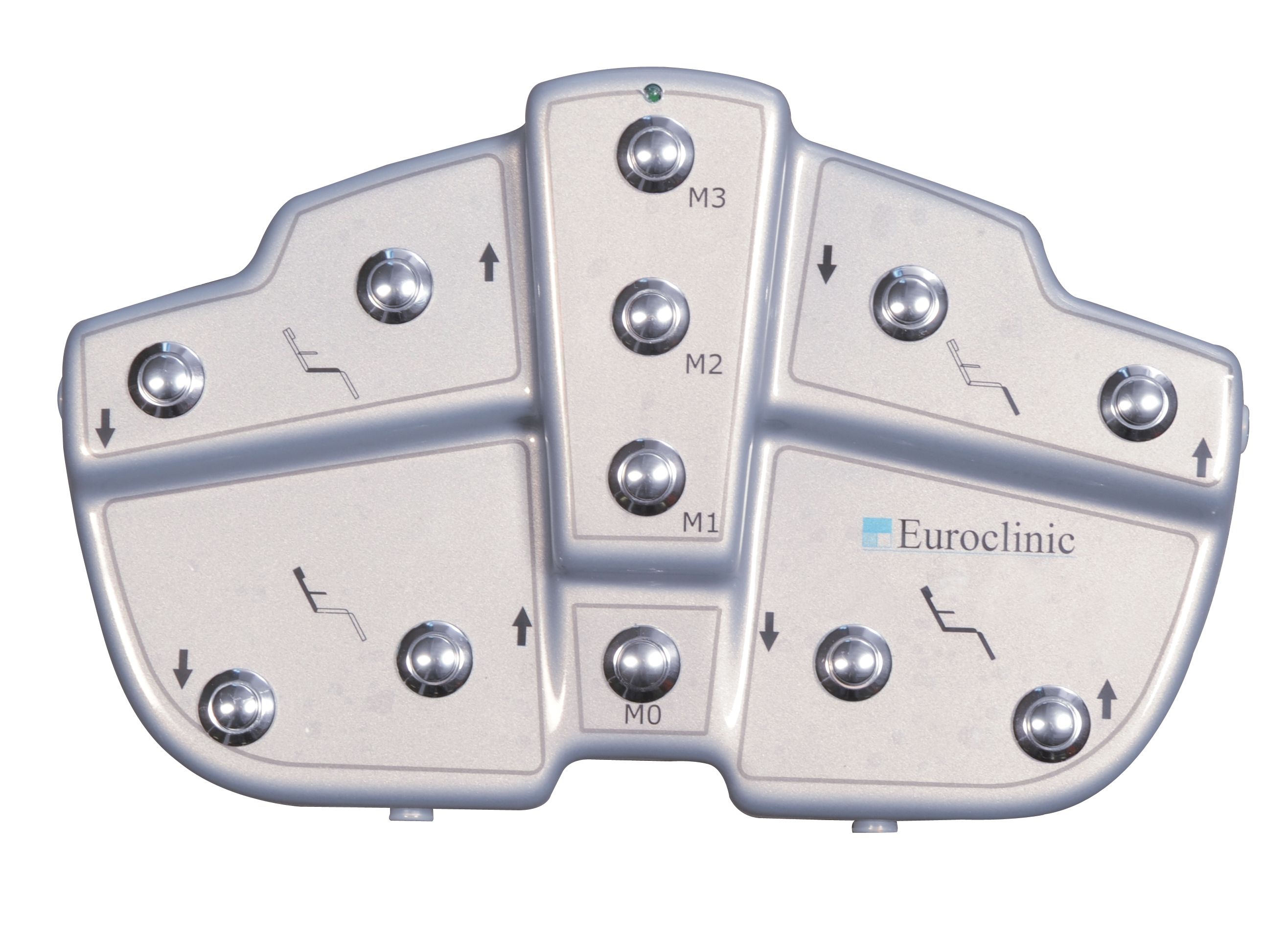 Педаль управления креслом Оснащена запоминающим устройством с памятью на 4 позиции: 3 положения, выбранные оператором, и 1 для вызова положения покоя кресла («нулевое» положение). Опционально - использование беспроводной педали.