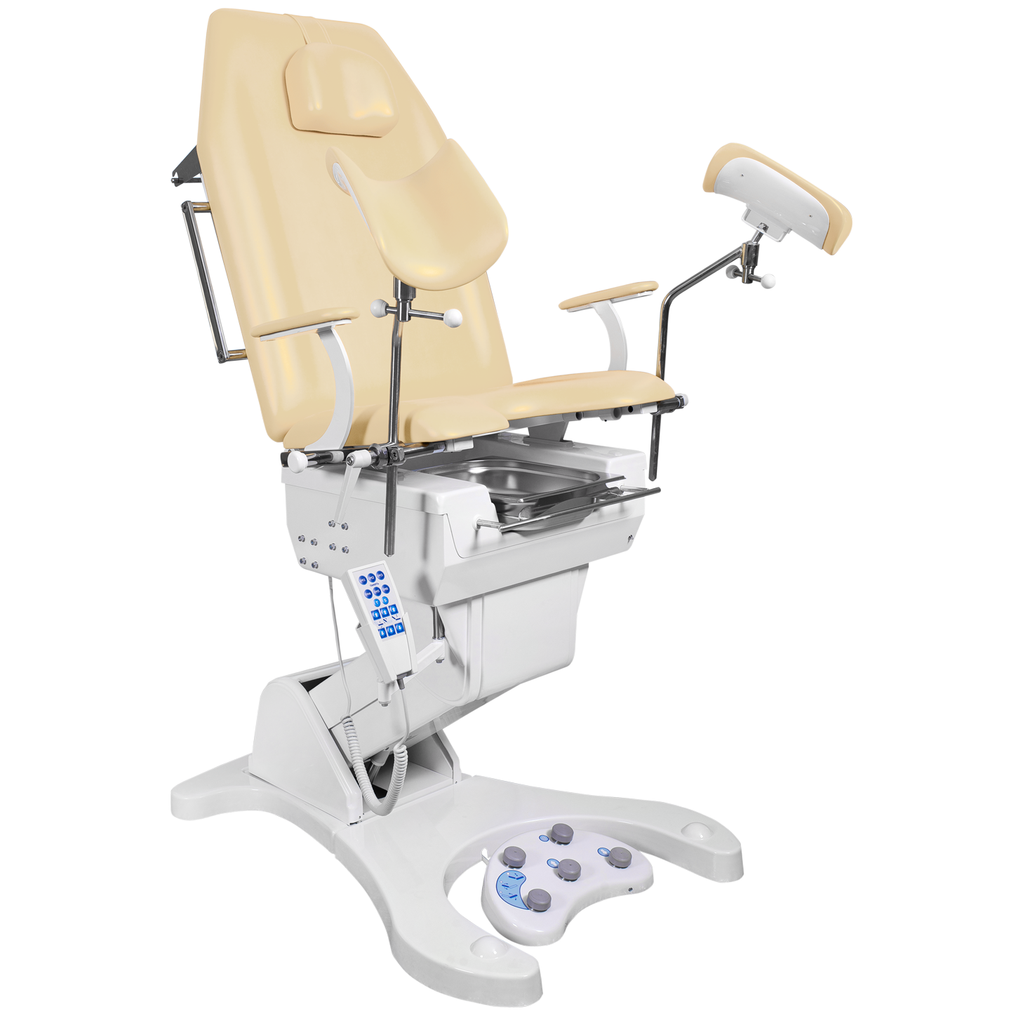 - Все возможные для гинекологического кресла регулировки благодаря 3 электроприводам обеспечивают максимальный комфорт пациента и удобство работы врача