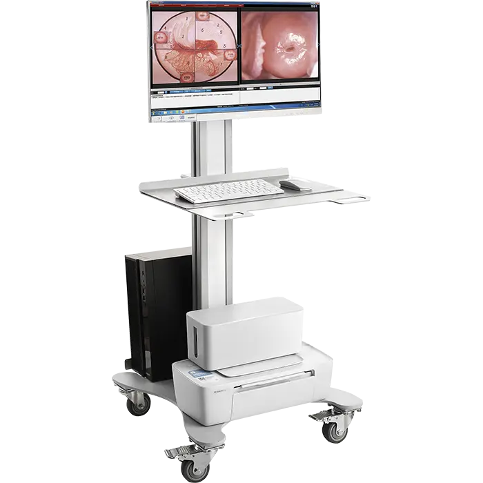 - Сочетает в себе преимущества оптической системы микроскопа и электронной системы визуализации кольпоскопа.