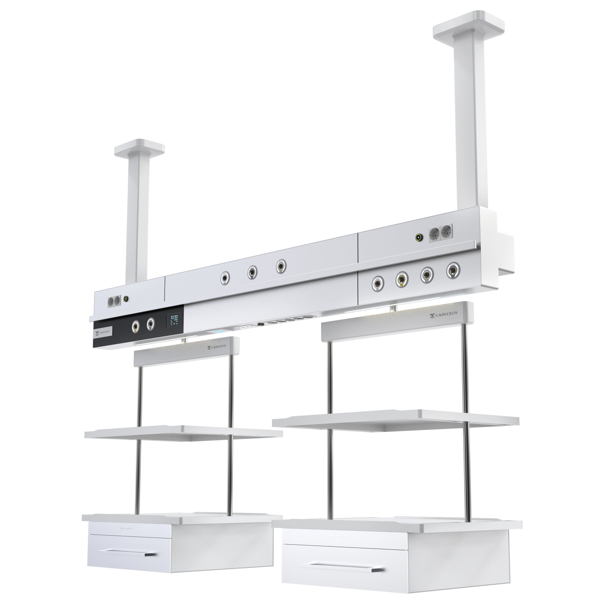 При изготовлении медицинских потолочных консолей CADUCEUS CBN2 (FUTURA) используется закругленный профиль из анодированного алюминия с гладким покрытием, встроенные розетки и выключатели и плотное прилегание панелей к корпусу, что облегчает очистку минимизируя риск возникновения инфекций.
