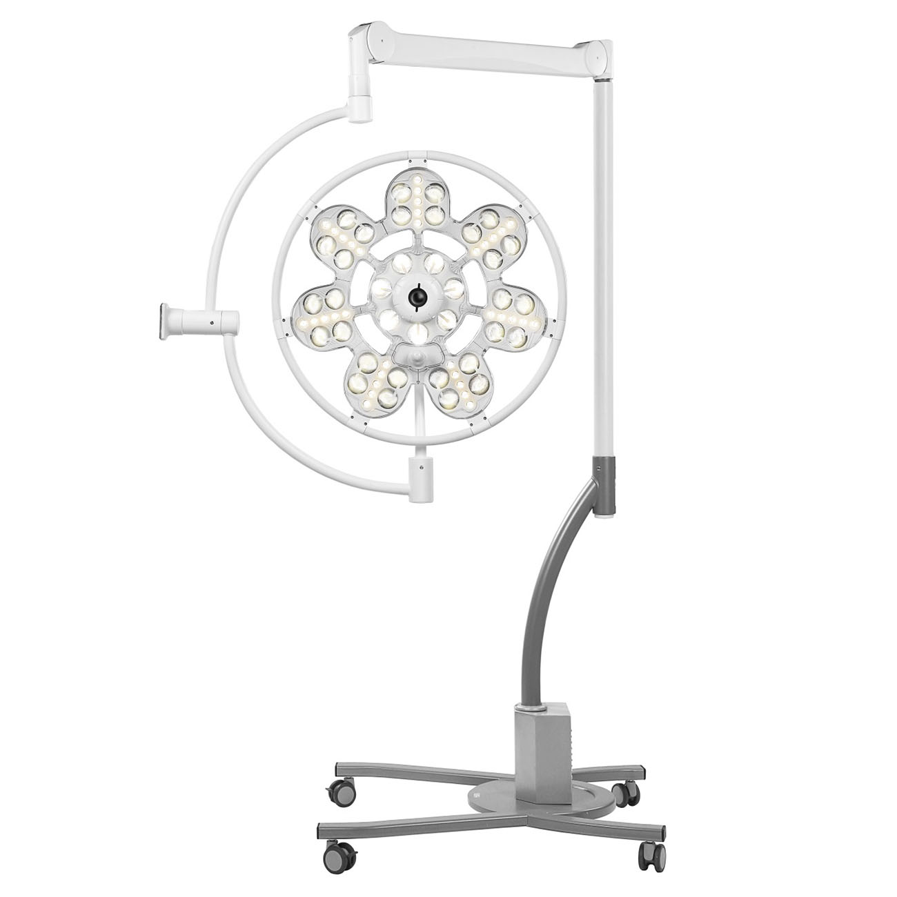 В хирургическом медицинском операционном светильнике Эмалед 500П используются белые светодиоды высокой мощности, которые разделяются на 2 группы. Первая группа светодиодов формирует сфокусированный световой поток, который обеспечивает глубокое освещение операционного поля. Для повышения эффективности работы светодиодов этой группы мы используем специальные отражательные элементы, которые предотвращают потерю света. Вторая группа светодиодов формирует широкий световой поток, который обеспечивает освещение операционного поля в широкой площади. Этому способствуют оптические элементы с полным внутренним отражением света.