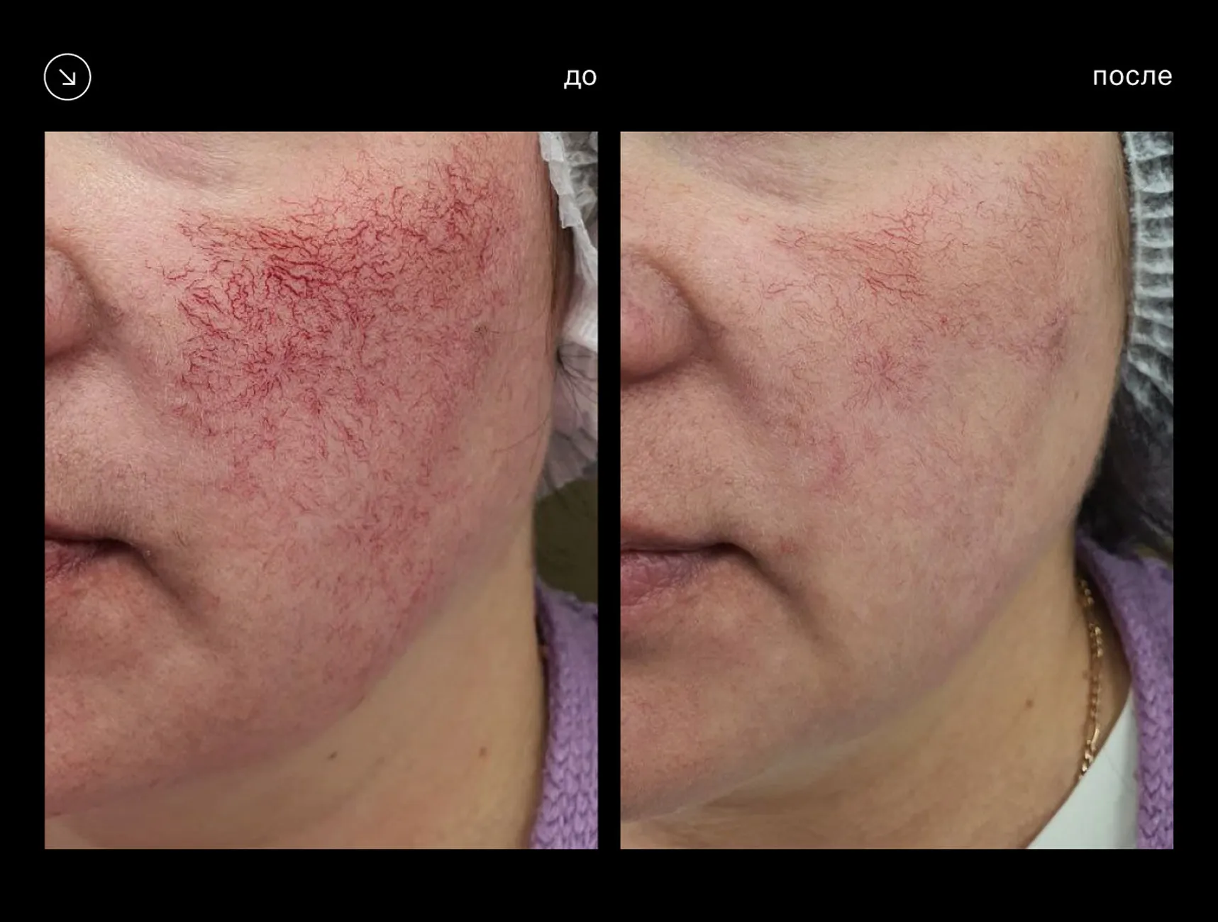 - 585 нм (жёлтый фильтр) Воздействует на телеангиэктазии и покраснения, хорошо работает в чувствительных зонах, в том числе в периорбитальной области.