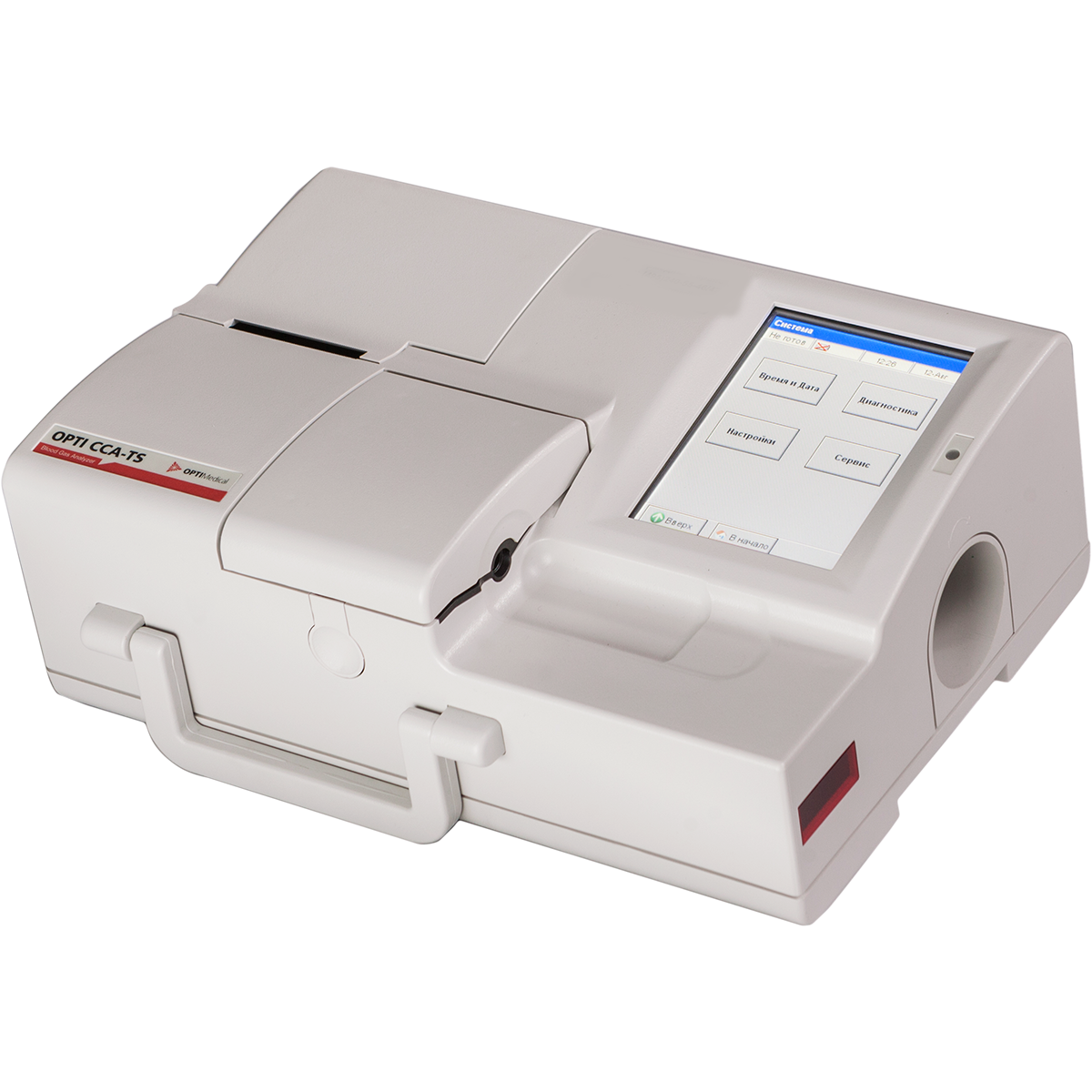 - Анализатор OPTI CCA-TS идеально подходит для условий работы с пациентами в критических состояниях, когда требуется срочная и точная клиническая информация.