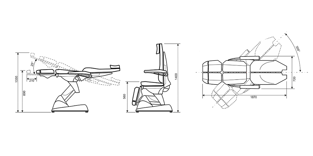 - 4 мощных двигателя (до 6000 Н), позволяющих перемещать по-вертикали совместно и раздельно спинку, сиденье (до положения Тренделенбурга) и подставку для ног;