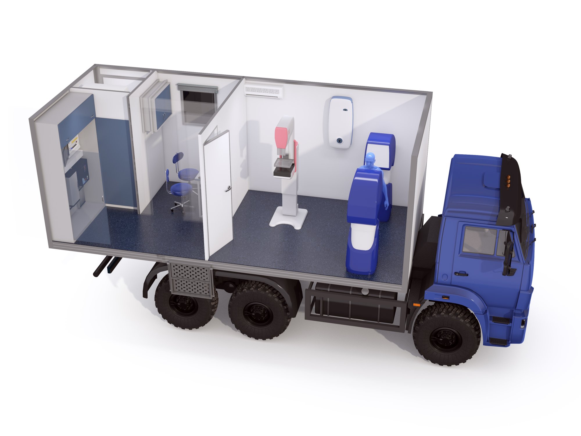 Передвижной рентгендиагностический кабинет оснащается в соответствии с приказом МЗ РФ № 560н от 9 июня 2020 г. К размещению внутри рентгендиагностического комплекса доступны самые современные цифровые маммографические аппараты (в том числе с функцией томосинтеза) и флюорографические аппараты ведущих российских производителей.