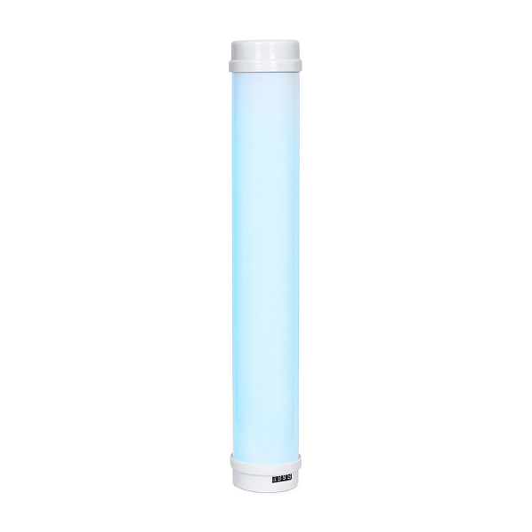 Тонкий корпус рециркулятора выполнен из металла с порошковым покрытием. УФ-лучи не проходят через его стенки, поэтому во время работы прибора находиться рядом с ним совершенно безопасно. Корпус прочен, занимает мало места, стильно выглядит и вписывается в любой интерьер. А его форма позволяет размещать прибор на полу или столе без дополнительной подставки, при этом циркуляция воздуха не нарушается.