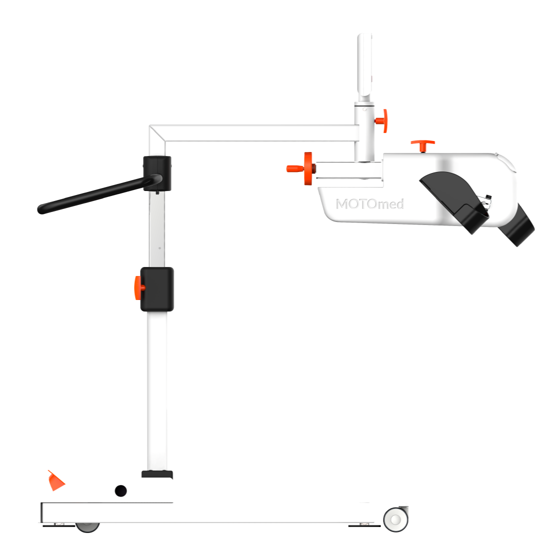 Благодаря регулировке высоты и интуитивному управлению тренажера MOTOmed, можно легко и просто адаптировать его к индивидуальным потребностям пациента. За счет свободно вращающихся роликов и опционально поставляемым раздвигающимся шасси, MOTOmed легко устанавливается у больничной койки и позиционируется с экономией места. Четырехточечная фиксация на полу с центральной педалью для фиксации обеспечивает стабильную опору. Для тренировки ног поставляется устройство "TrainCare" в качестве аксессуара и может быть индивидуально адаптировано к голеням пациента. Пластиковое покрытие обеспечивает надежную фиксацию ног и предотвращает чрезмерное растяжение или запирание коленных суставов. Устройство регулировки угла коленного сустава позволяет точно регулировать сгибание и разгибание коленного и тазобедренного суставов. Регулировка может быть произведена даже во время тренировки.