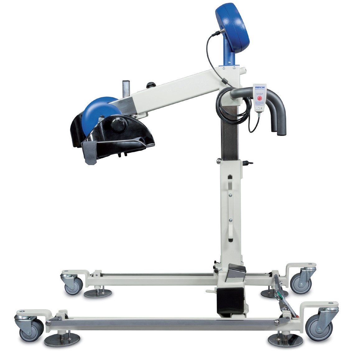 Большие транспортные колеса делают тренажер мобильным. Раздвижное шасси и бесступенчатая регулировка высоты упрощают адаптацию тренажера относительно кроватей и кушеток. Комфортная фиксации на полу делает возможным быстрое и удобное позиционирование. Функции настройки уровня сгибания в коленном суставе позволяют оптимизировать положение ног пациента.
