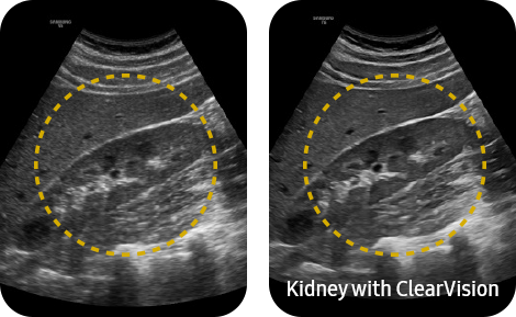 Уменьшение шума для улучшения качества 2D-изображения ClearVision улучшает контрастность границ и создает четкие 2D-изображения для оптимальной диагностики.
