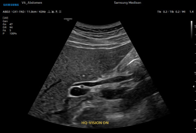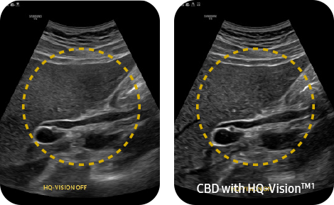Устранение размытых областей на изображении HQ-VisionTM обеспечивает более четкое изображение за счет смягчения характеристик ультразвуковых изображений, которые немного размыты по сравнению с реальным зрением.