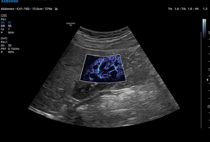 Визуализация замедления кровотока в микрососудах MV-FlowTM визуализирует микроциркуляцию и замедленный кровоток, отображая интенсивность кровотока в цвете.