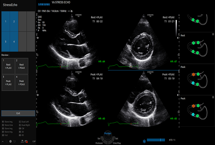 Регистрируйте движение стенки и сообщайте о нем для определения функции сердца и кровеносных сосудов StressEcho пакет включает в себя оценку движений на стене и составление отчетов. В него входят упражнения StressEcho, фармакологические упражнения StressEcho, диастолические упражнения StressEcho и бесплатные программируемые упражнения StressEcho.