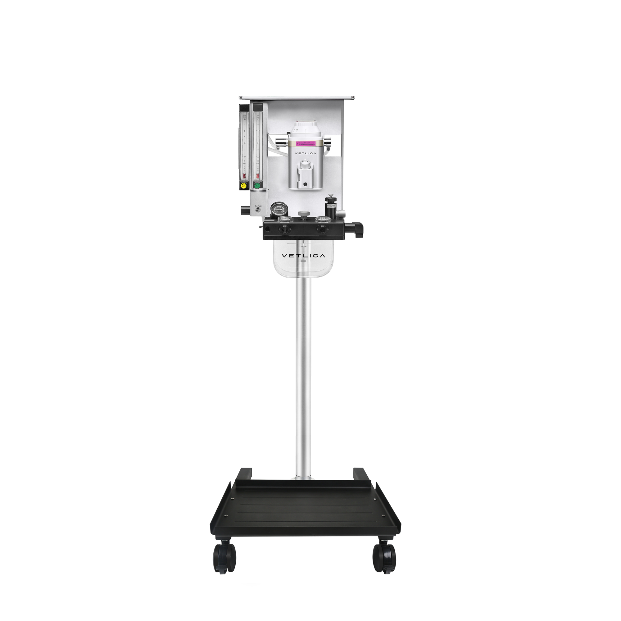 В комплекте с портативным воздушным компрессором. Подставка для кислородного концентратора прямо на тележке. Опционально-полка с установкой на нее автоматического турбинного аппарата ИВЛ для ИВЛ животных 0,4 −150 кг.