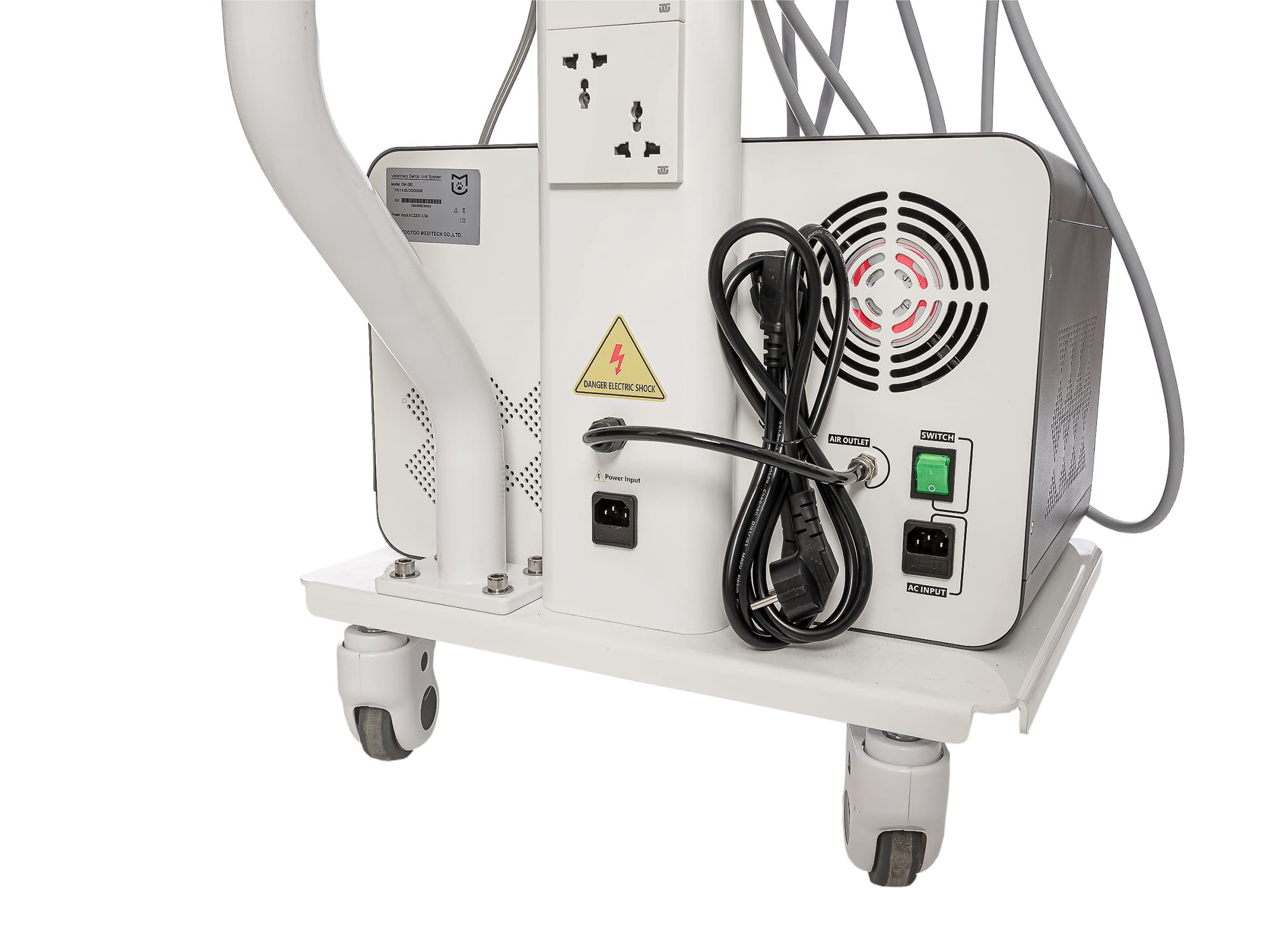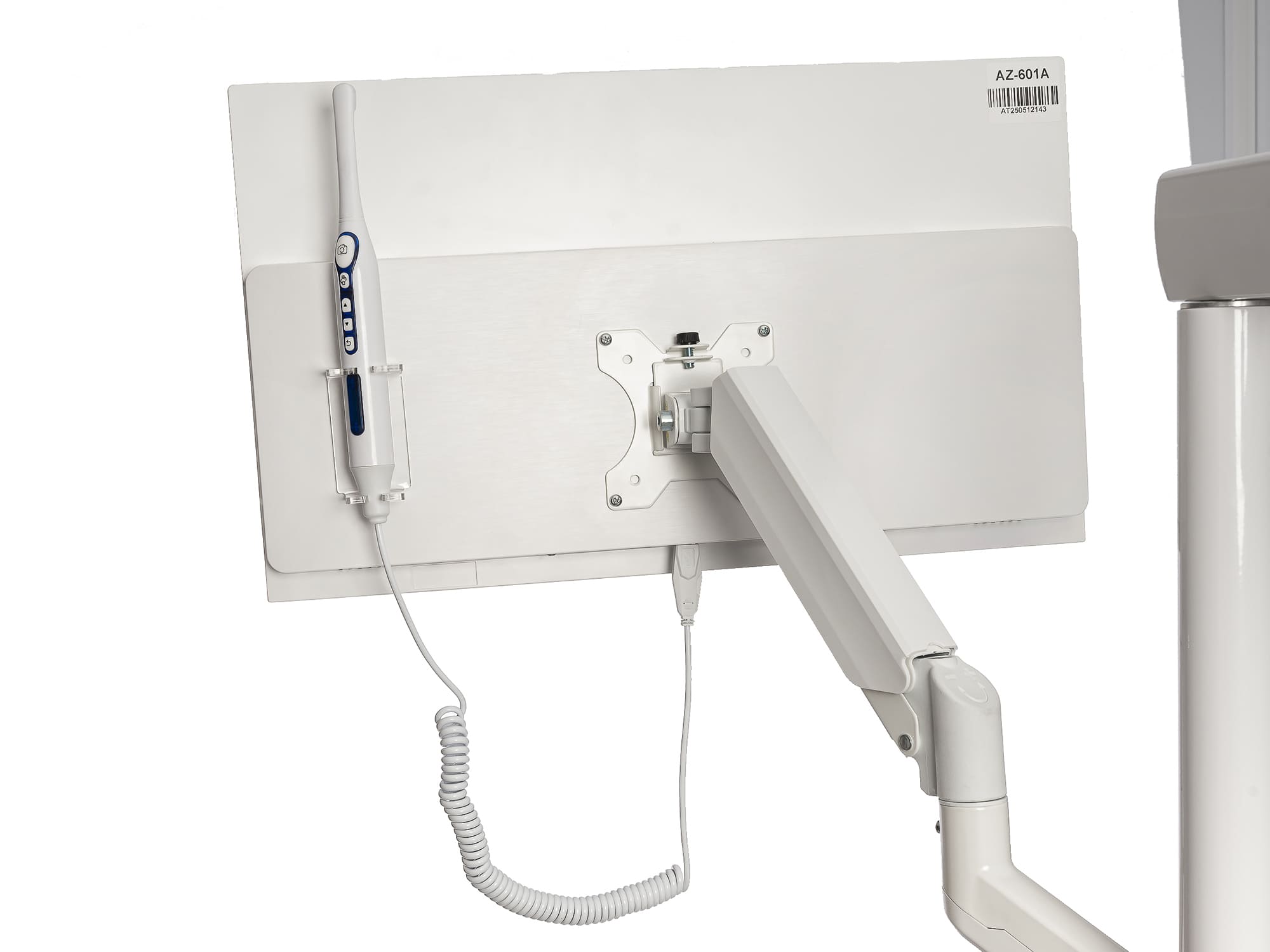 Верхняя панель представляет собой непористую рабочую поверхность, которую легко дезинфицировать. В комплект входит съемная пластина из нержавеющей стали с магнитными краями, которая обеспечивает безопасное место для хранения инструментов и предотвращает падение боров на пол во время процедур. Основной корпус изготовлен из металла с порошковым покрытием и алюминия, которые не деформируются и не портятся со временем.